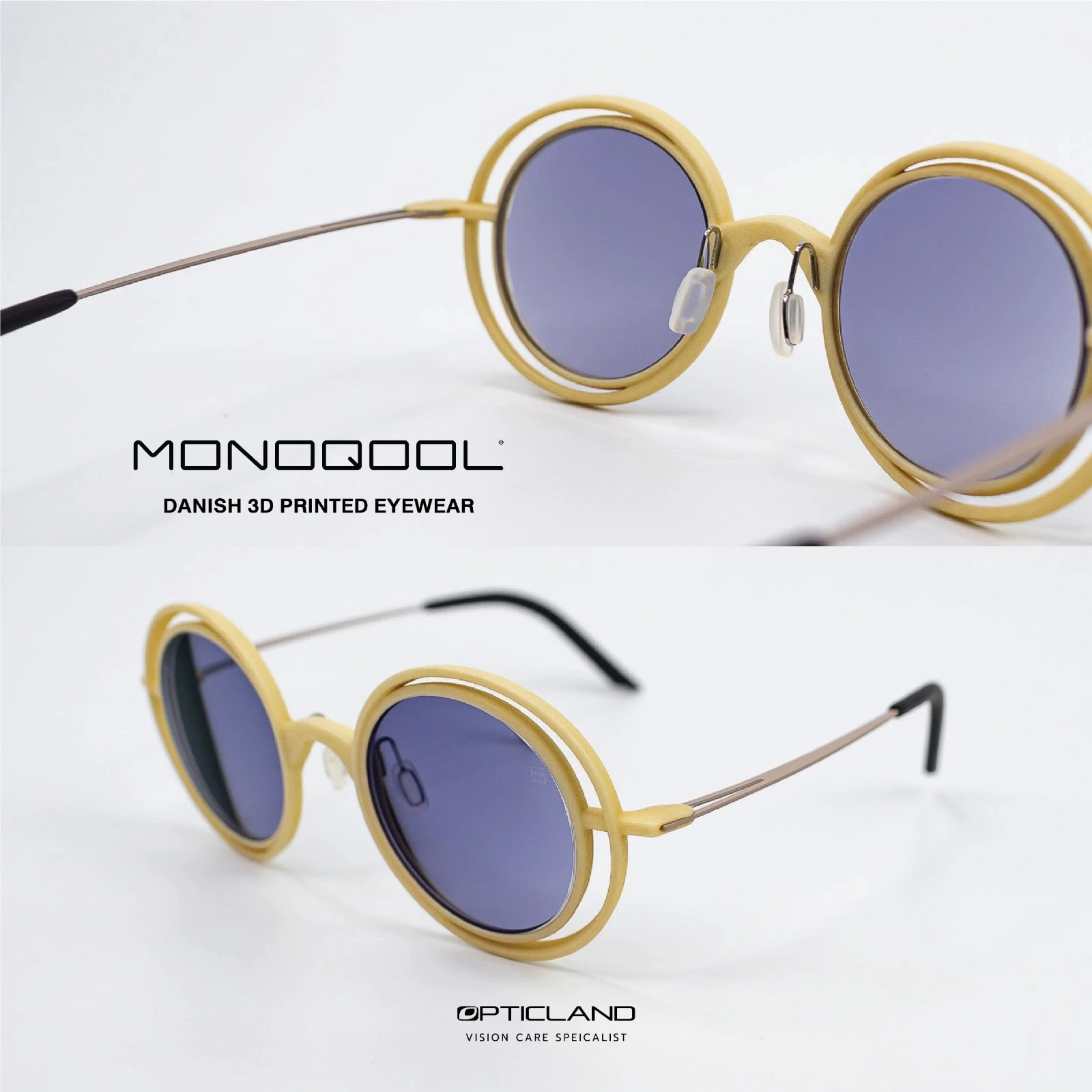 Monoqool แว่น 3D printed จากเดนมาร์ก รุ่นนี้โดดเด่นด้วยกรอบแว่นสองเลเยอร์ สีครีม ไม่ซ้ำใคร ได้ทั้งความโดดเด่น และฟังก์ชั่นของแว่นในอันเดียว