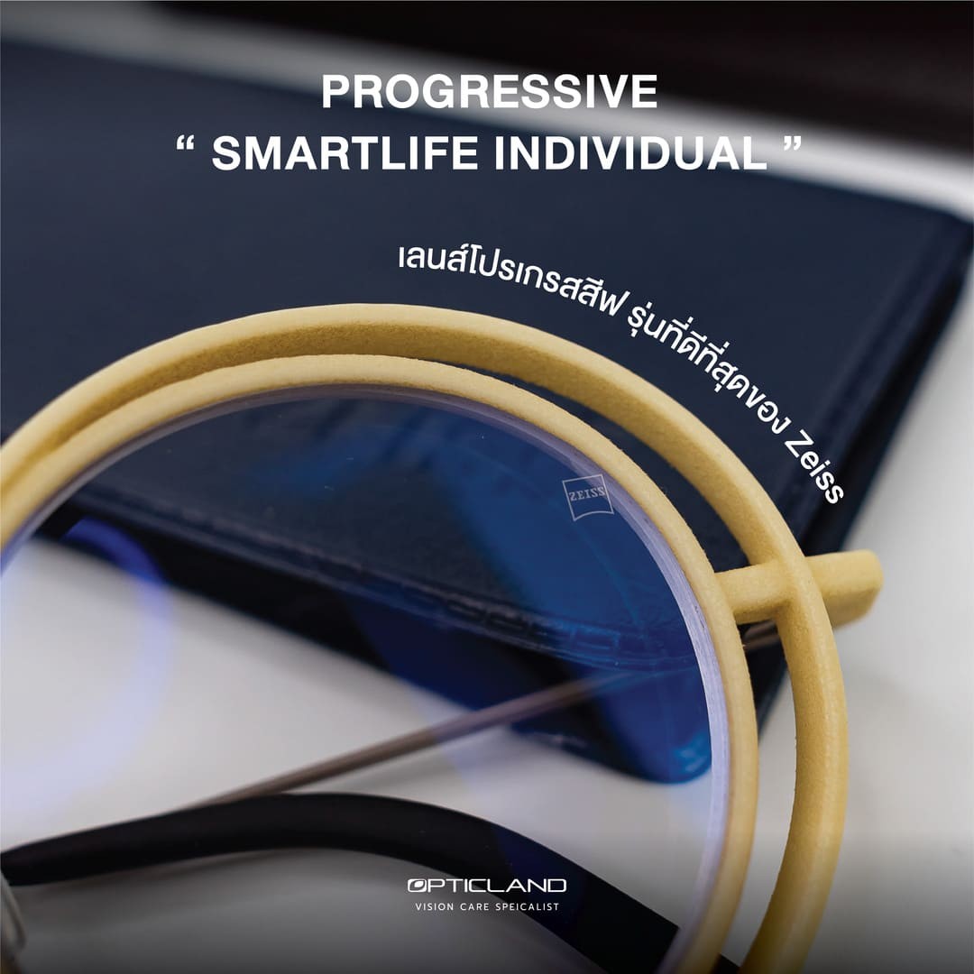 Progressive Smartlife Individual เป็นเทคโนโลยีเลนส์โปรเกรสสีฟ รุ่นที่ดีที่สุดของ Zeiss คำนวณโครงสร้างเลนส์จากค่าพารามิเตอร์กรอบแว่นขณะที่ใส่อยู่บนหน้าของลูกค้า ทำให้สามารถมั่นใจได้ว่า จะได้เลนส์โปรเกรสสีฟที่ปรับเข้าหาลักษณะสายตา และการใช้งานของเราจริงๆ นอกจากนี้ตัวเลนส์ยังสามารถใส่ออพชั่น ออกแดดแล้วเปลี่ยนสีอัตโนมัติ เพิ่มความสบายตายิ่งขึ้นไปอีกระดับ