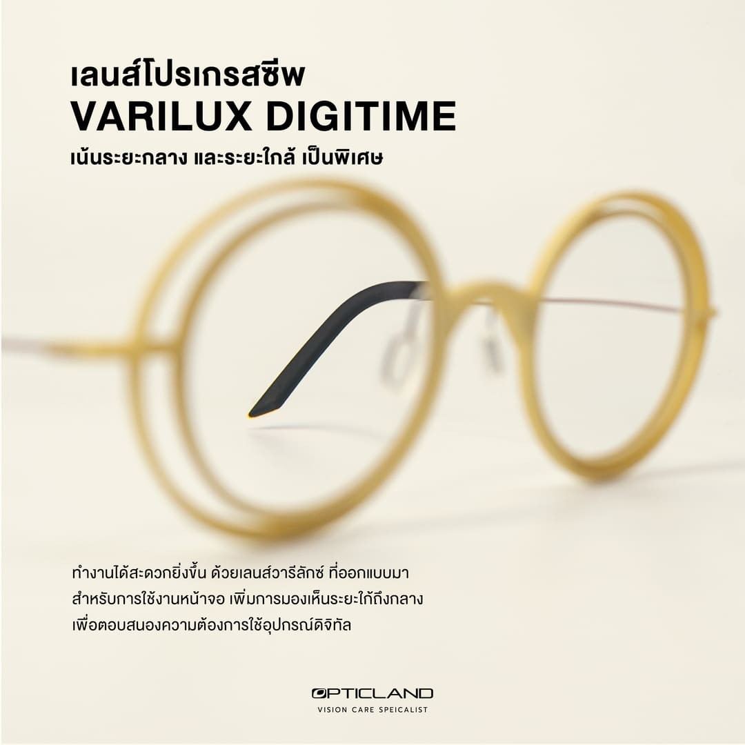 เลนส์ที่นักทัศนมาตรที่ร้าน OPTICLAND แนะนำ Varilux Digitime เป็นเลนส์สำหรับใช้งานในออฟฟิศ เน้นระยะกลาง และระยะใกล้ เป็นพิเศษ ทำให้มุมมองในการใช้งาน กว้างและสบายกว่าเลนส์โปรเกรสซีฟทั่วไป