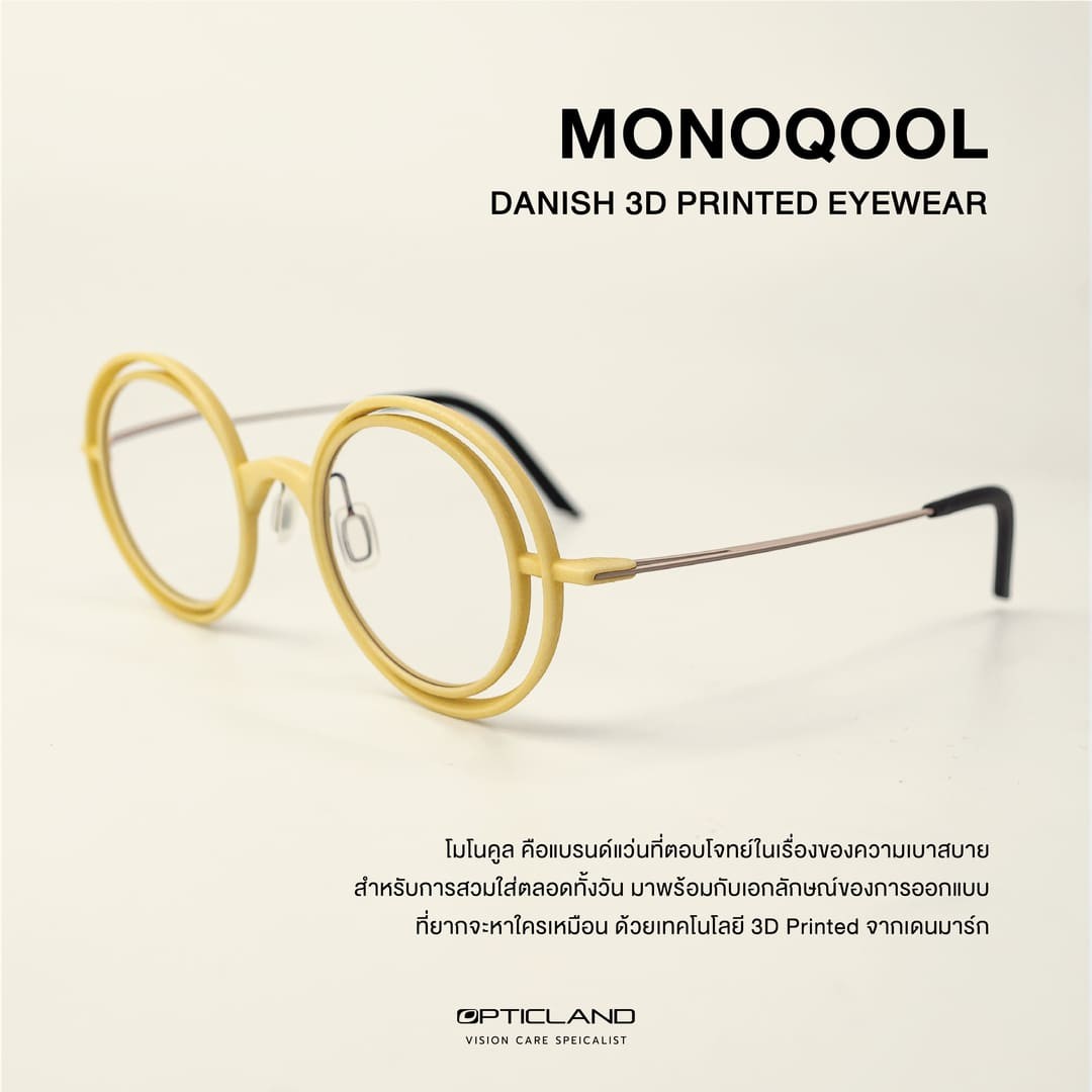 กรอบแว่นที่ลูกค้าเลือก กรอบแว่นยี่ห้อ MONOQOOL โมเดล Slider Series รุ่น DB กรอบแว่น 3D Printing จากเดนมาร์ก ดีไซน์กรอบแว่น สอง Layer มาพร้อมกับสีครีมดูโดดเด่นไม่ซ้ำใคร